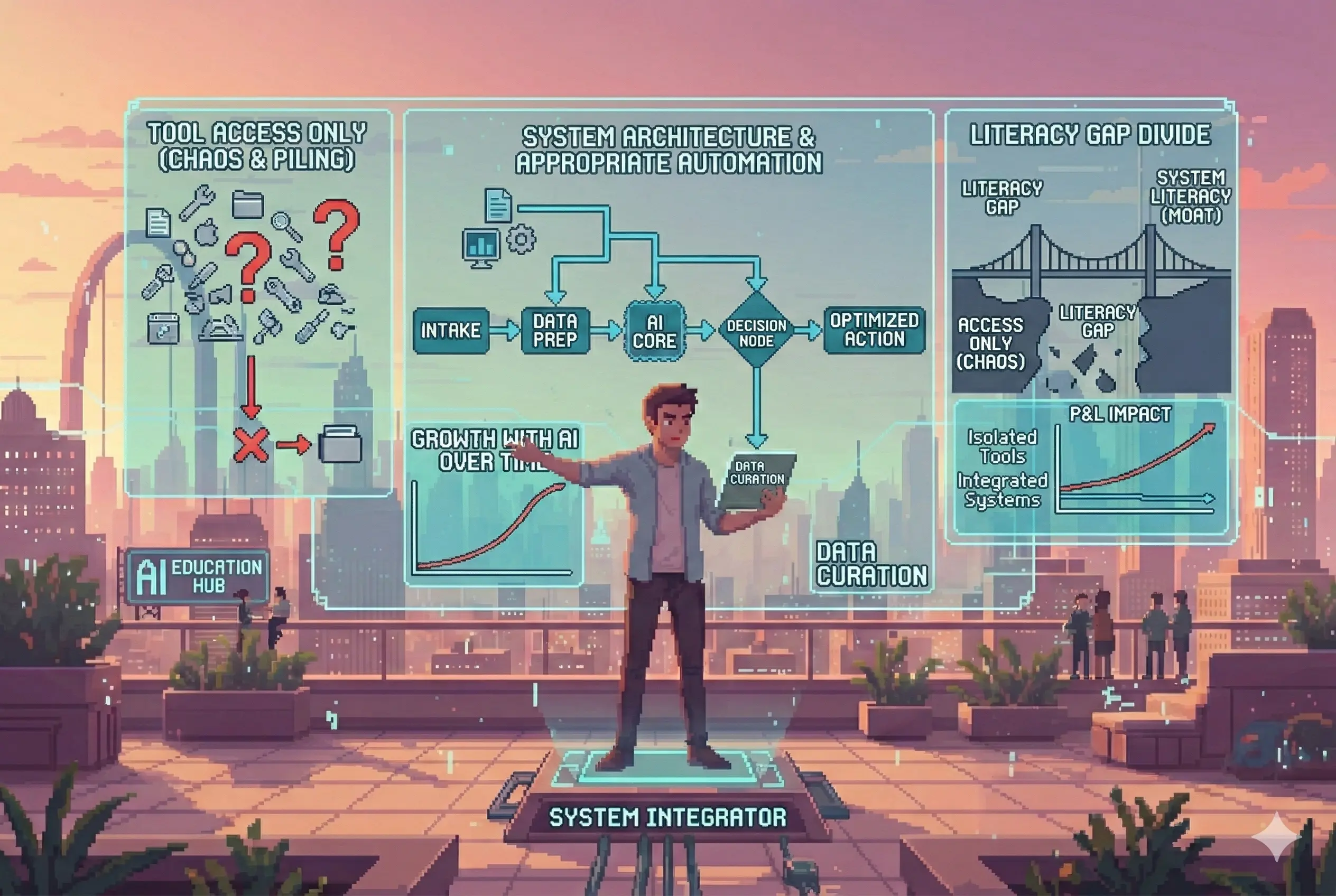 I help companies integrate tech that helps them scale. I guide my clients to build real tech strategy, educate their teams, and transform their operations.